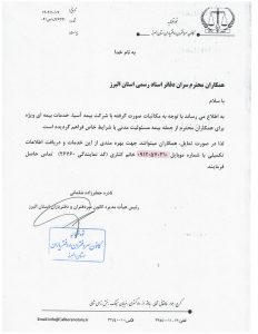 ارائه خدمات بیمه ای ویژه از جمله بیمه مسئولیت مدنی با شرایط خاص و تخفیف 25 درصدی به مناسبت روز دفاتر اسناد رسمی برای سران دفاتر استان البرز